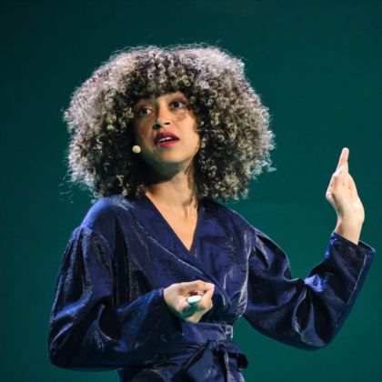 Book female speaker Angela Oguntala for speeches and keynotes with WOMEN SPEAKER Agency.